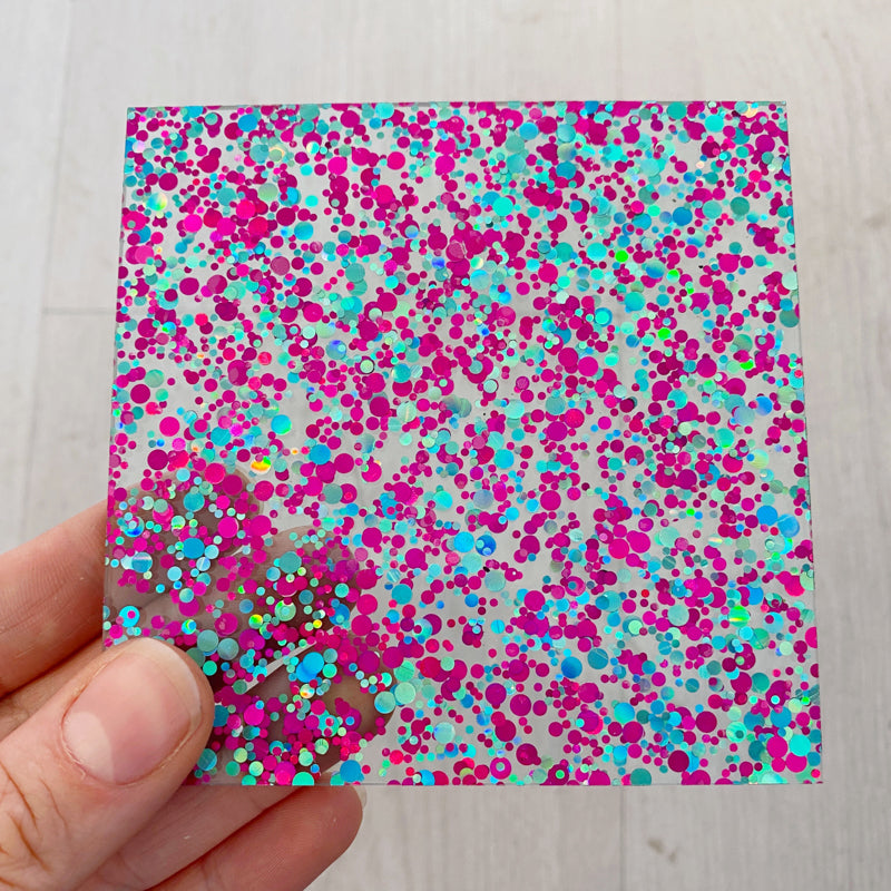3mm Acrylic - Party Sequin Confetti Glitter - Turquoise/ magenta pink/ white (201)