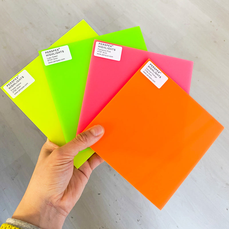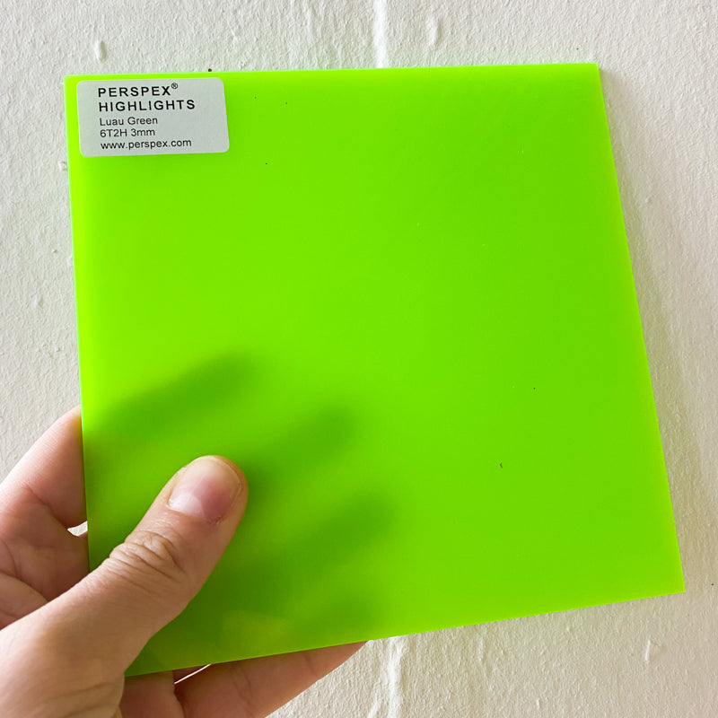 3MM ACRYLIC FLUORESCENT HIGHLIGHTS (FLUO/ NEON) SEMI-OPAQUE - GREEN *SECONDS* (0267)