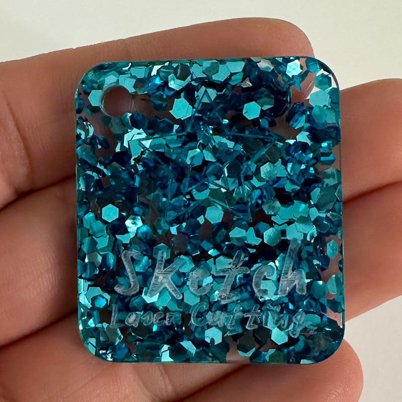3mm Acrylic - Chunky Hex Fleck Glitter - Cerulean Blue