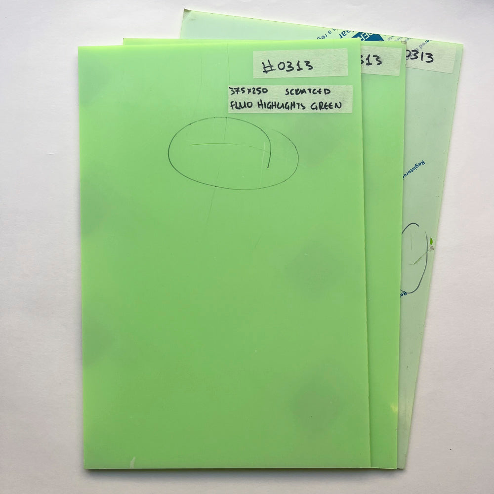 Fluorescent 3mm acrylic for laser cutting and engraving in bright neon green.